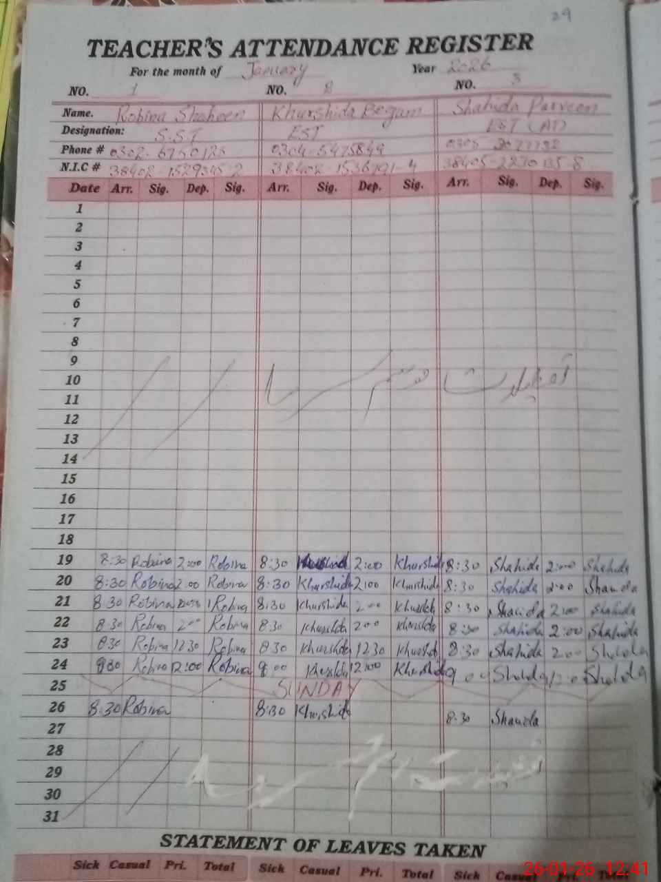 | Name: RO**** SH**** Designation: (School Headmaster's/Headmistress's) S.S.T.(Arts) Phone/Cell Number: 03**** |