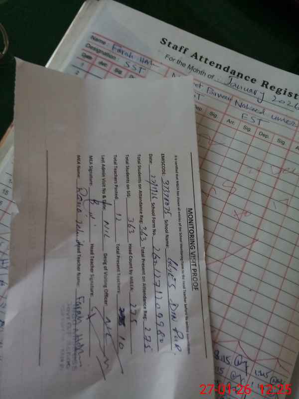 | Attendance Register | Head Teacher | MEA with School | Visit Proof |
