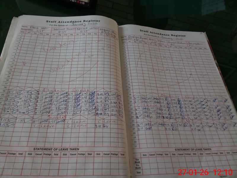 | 00**** | Ni**** Ah**** | C DAR | 2 | 0 | 0 | 0 | 0 | 0 | 0 | 0 | 2 | Absent (Un-Authorized) | |
