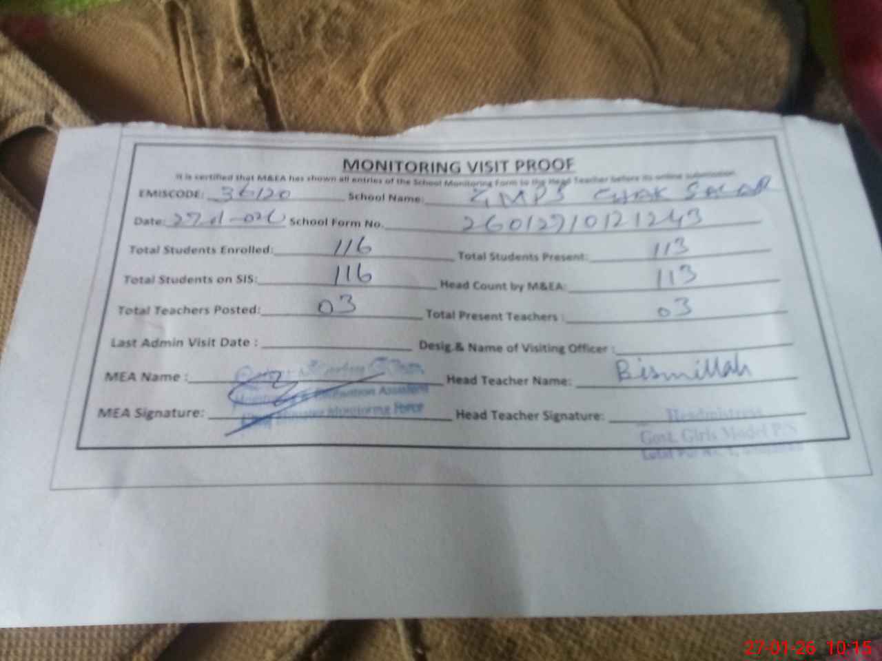 | EMIS Code: 36120312 | Name of School: GMPS CHAK SALAR | |||