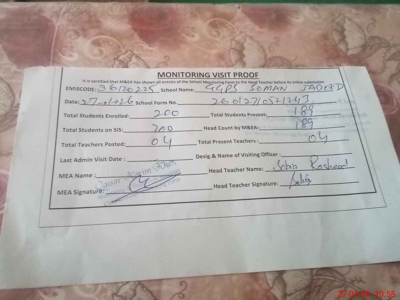 | EMIS Code: 36120225 | Name of School: GGPS SOMAN JADEED SHUJABAD | |||