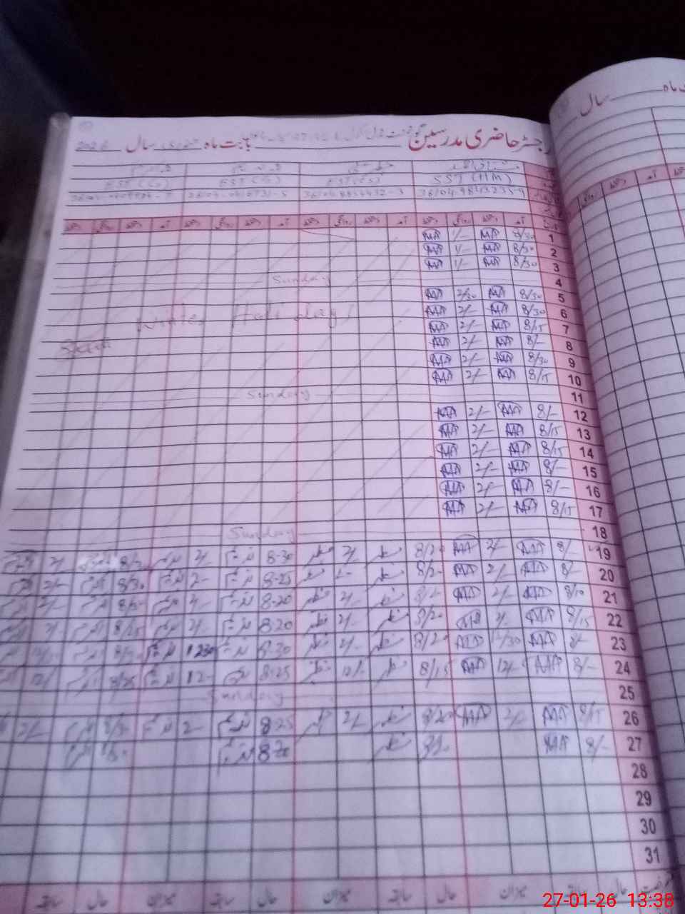 | Name: Mu**** Ah**** Designation: (School Headmaster's/Headmistress's) SST Phone/Cell Number: 03**** |