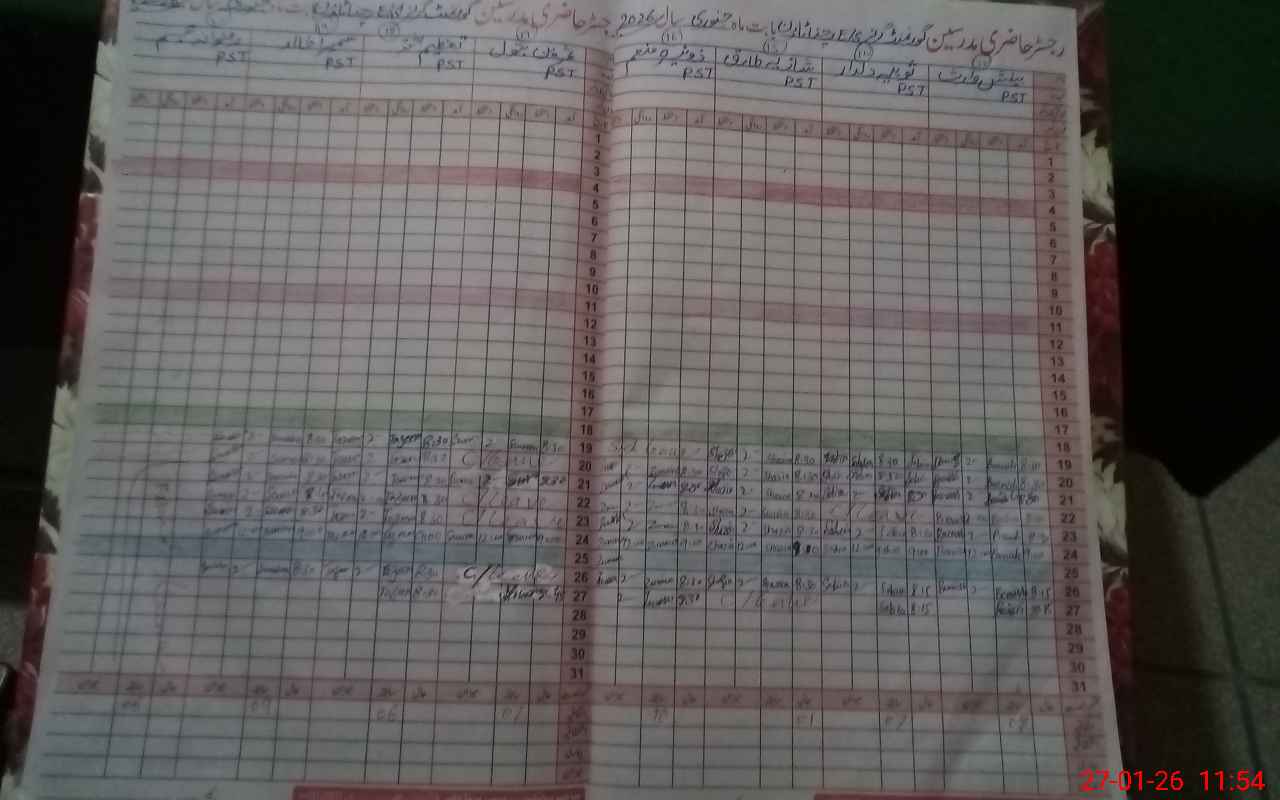 | CNIC | Full Name | Designation | R/C | Absence During Last Calender Month |