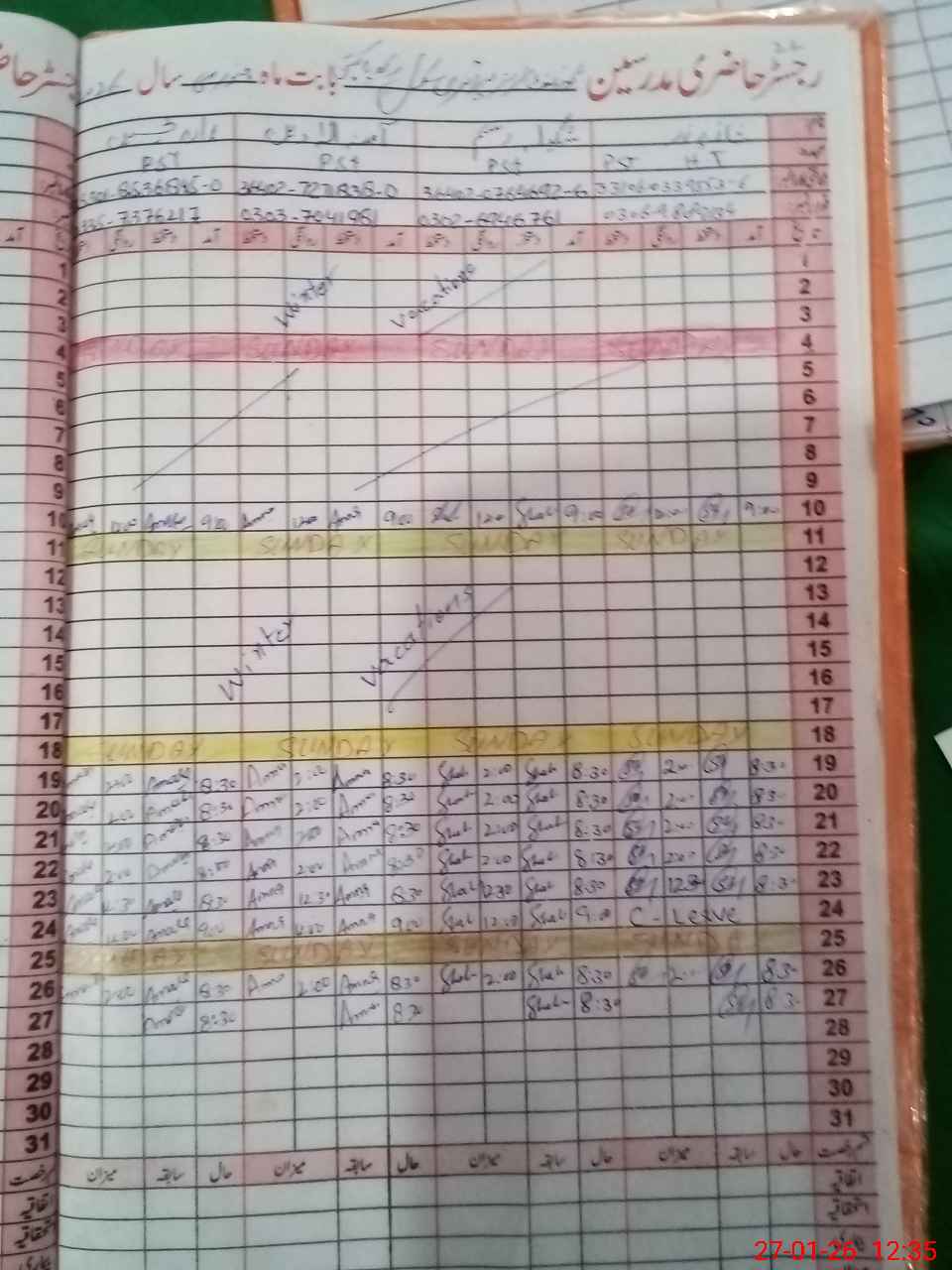 | Name: Sh**** No**** Designation: (School Headmaster's/Headmistress's) PST Phone/Cell Number: 03**** |