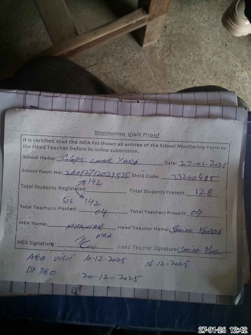 | EMIS Code: 33240485 | Name of School: GGPS CHAR YARI | |||