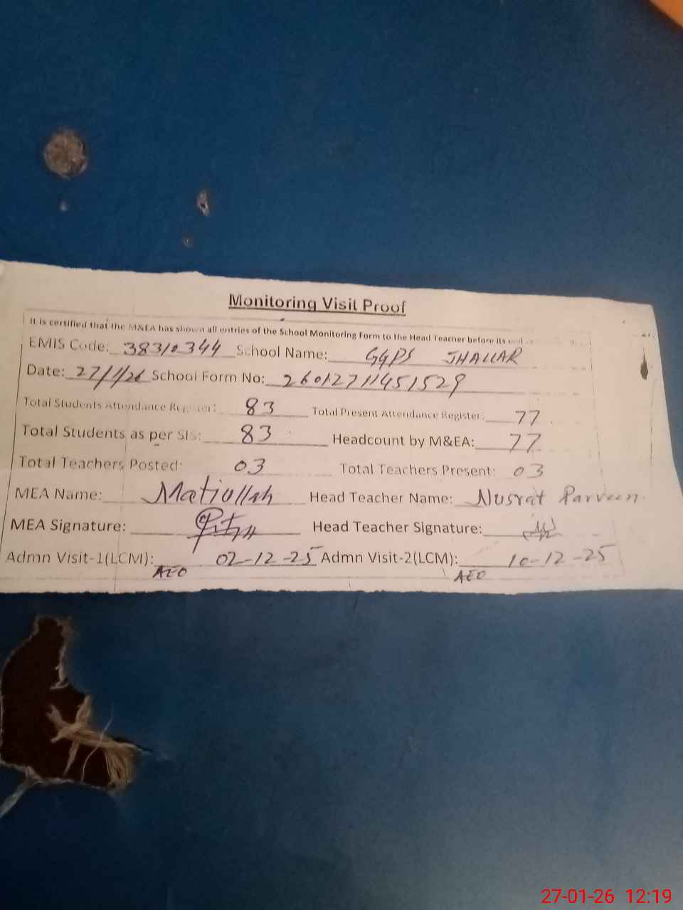 | EMIS Code: 38310344 | Name of School: GGPS JHALLAR | |||