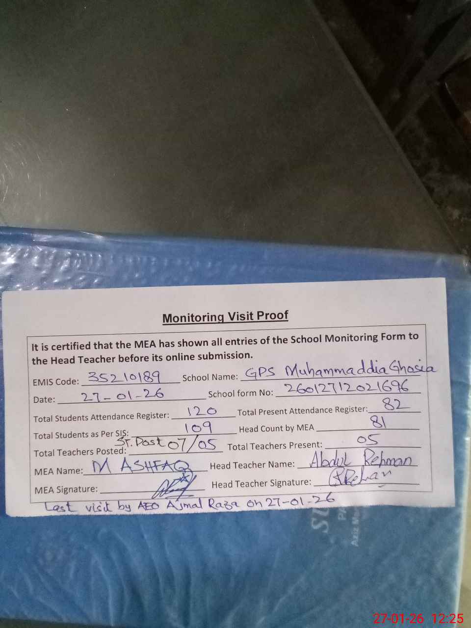 | EMIS Code: 35210189 | Name of School: GPS MUHAMMADDIA GHOUSIA | |||