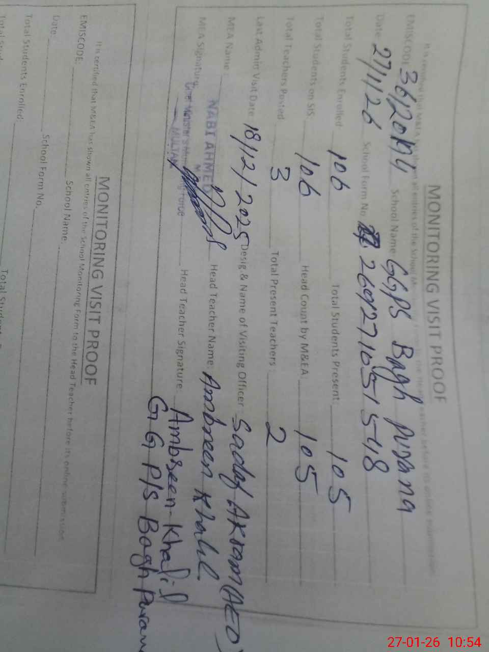 | EMIS Code: 36120194 | Name of School: GGPS BAGH PURANA SHUJABAD DISTT. MULTAN | |||