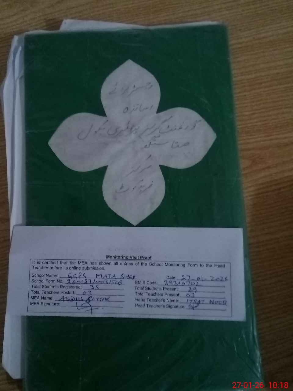 | EMIS Code: 39310702 | Name of School: GGPS MATA SINGH | |||