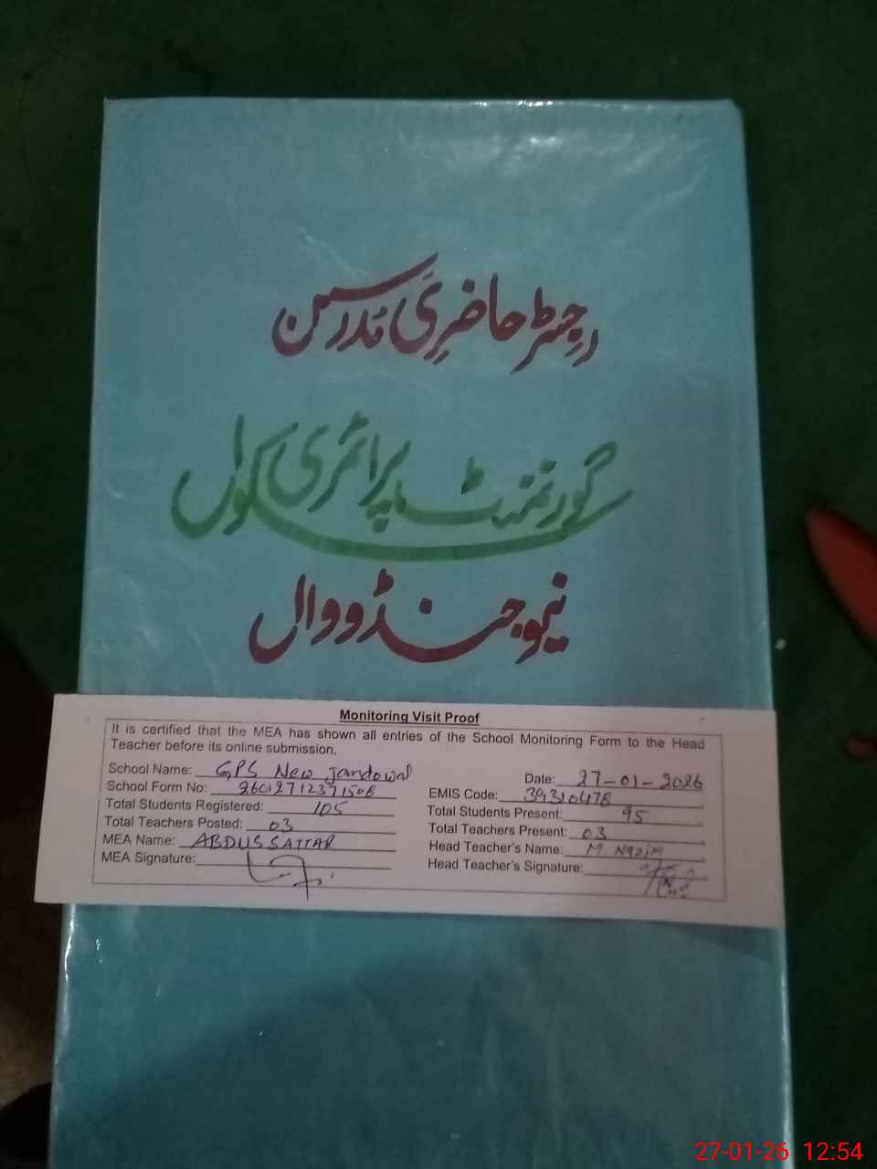 | EMIS Code: 39310478 | Name of School: GPS NEW JANDOWAL | |||