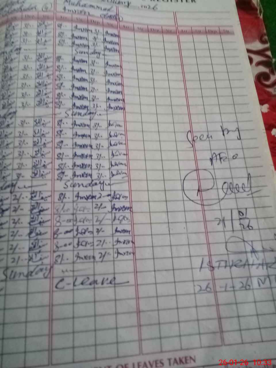 | Leave | Duty | Absent | Maternity | Medical | Ex- Pak |