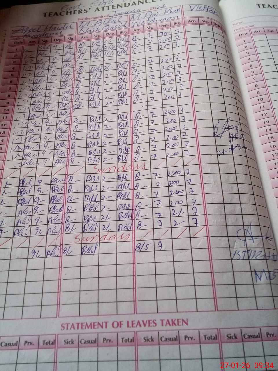 | CNIC | Full Name | Designation | R/C | Absence During Last Calender Month |