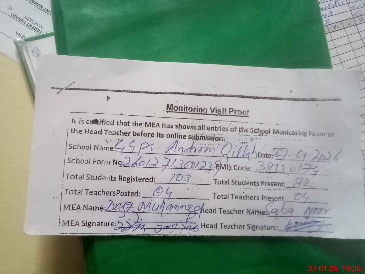| EMIS Code: 38130174 | Name of School: GGPS ANDROON QILA | |||
