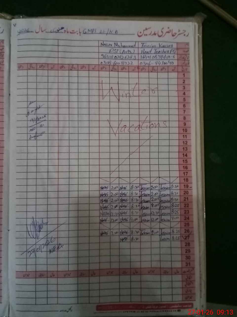 | Name: TA**** KA**** Designation: (School Headmaster's/Headmistress's) PST Phone/Cell Number: 03**** |