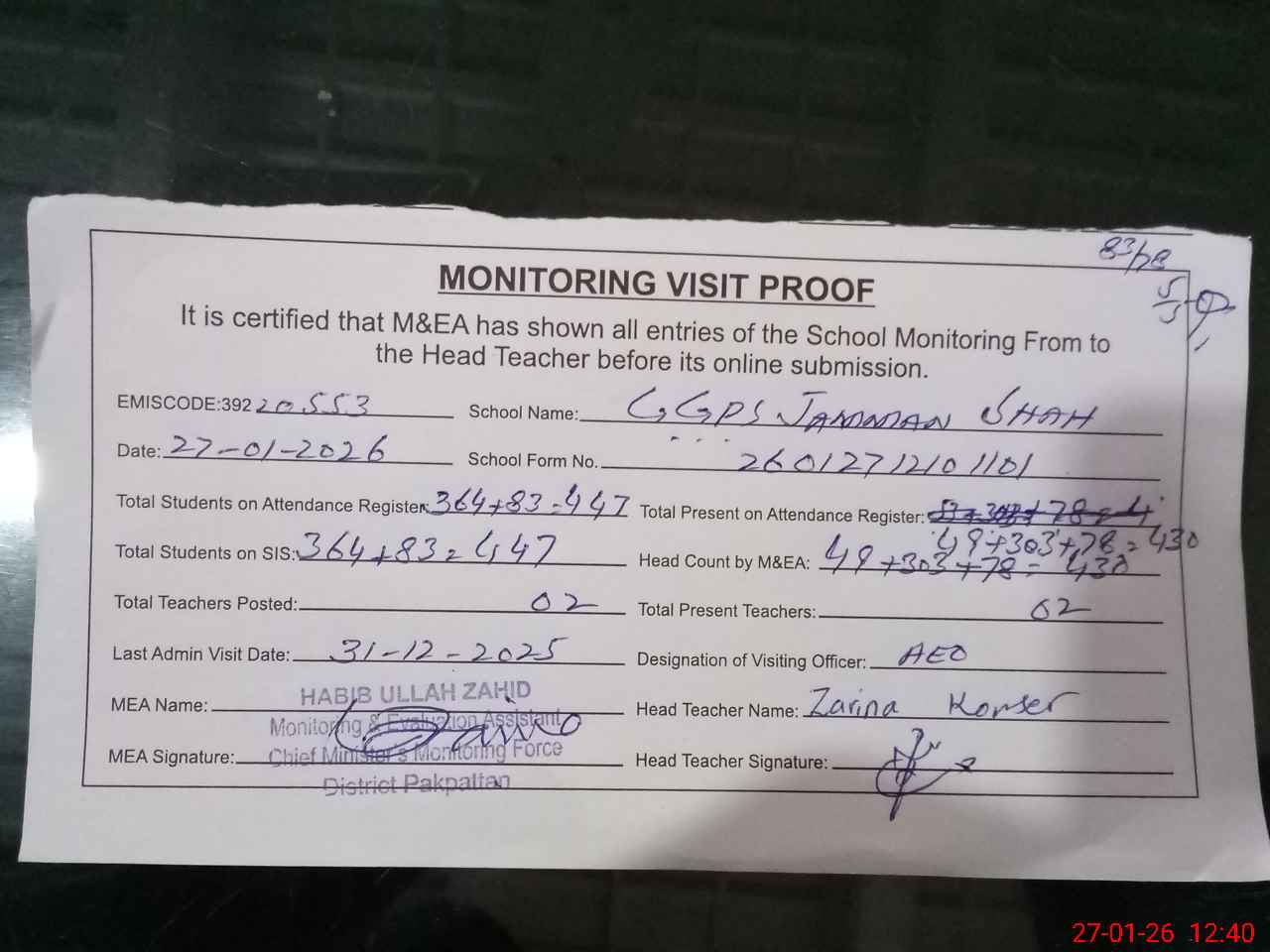 | EMIS Code: 39220553 | Name of School: GGPS JAMAN SHAH | |||