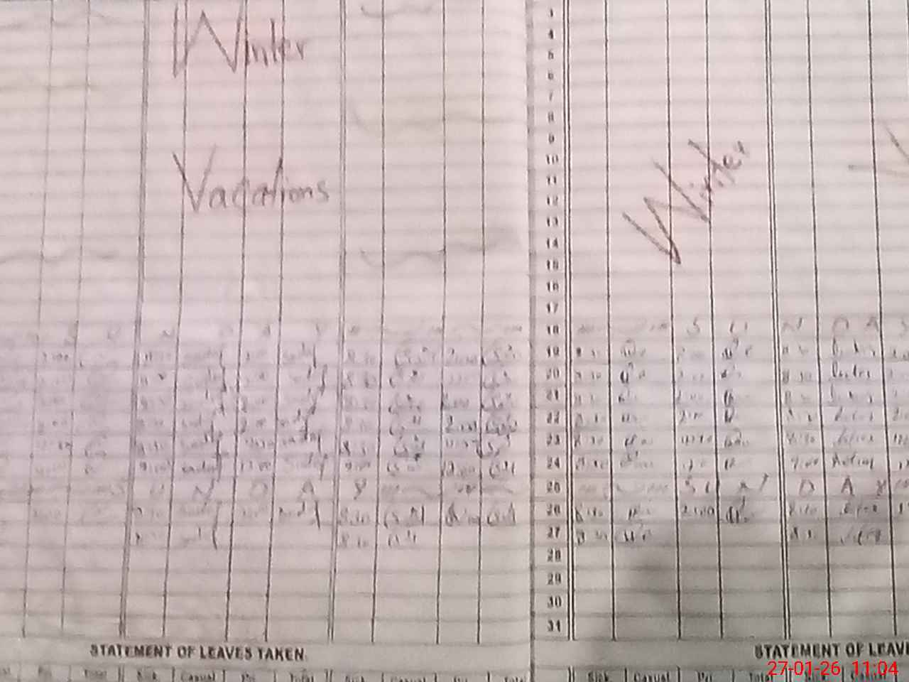 | Leave | Duty | Absent | Maternity | Medical | Ex- Pak |