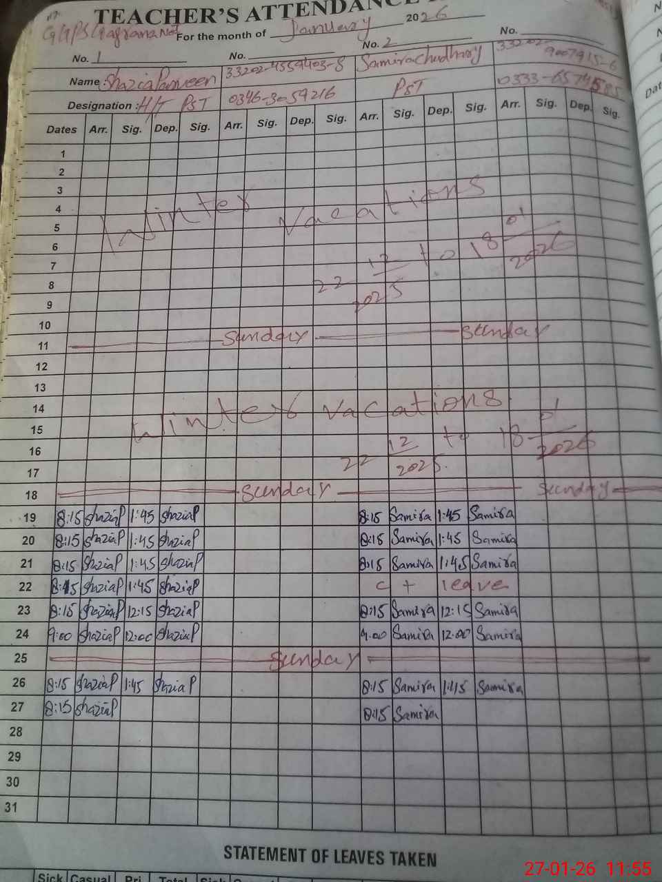 | Name: Sh**** Pe**** Designation: (School Headmaster's/Headmistress's) PST Phone/Cell Number: 03**** |