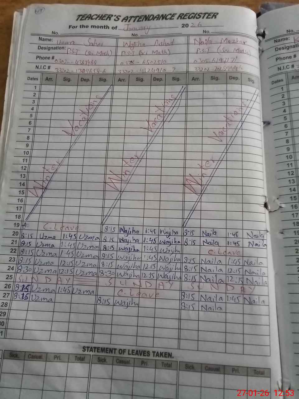 | Name: Uz**** sa**** Designation: (School Headmaster's/Headmistress's) ESE (SCI-MATH) Phone/Cell Number: 03**** |