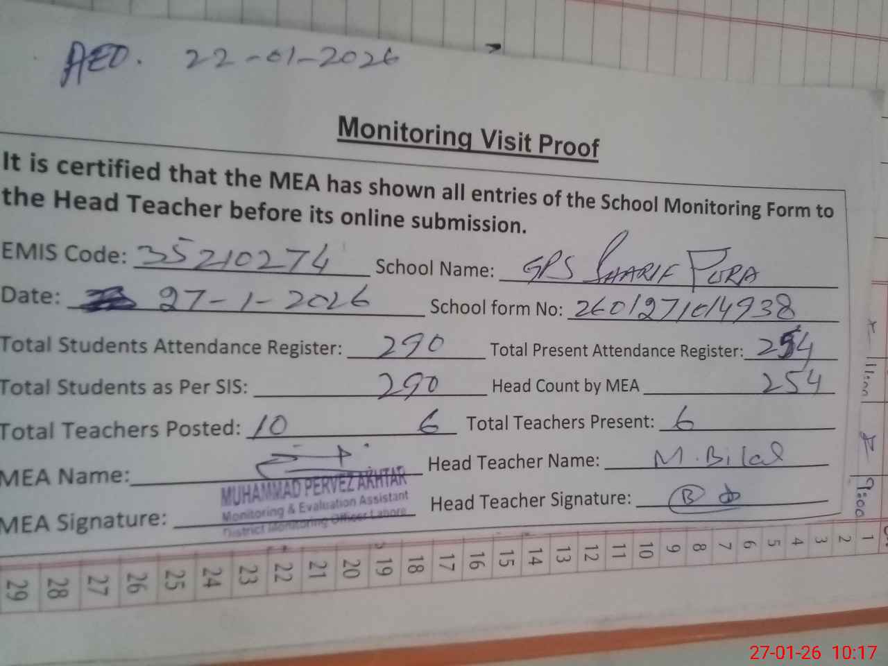 | EMIS Code: 35210274 | Name of School: GPS SHARIF PURA | |||