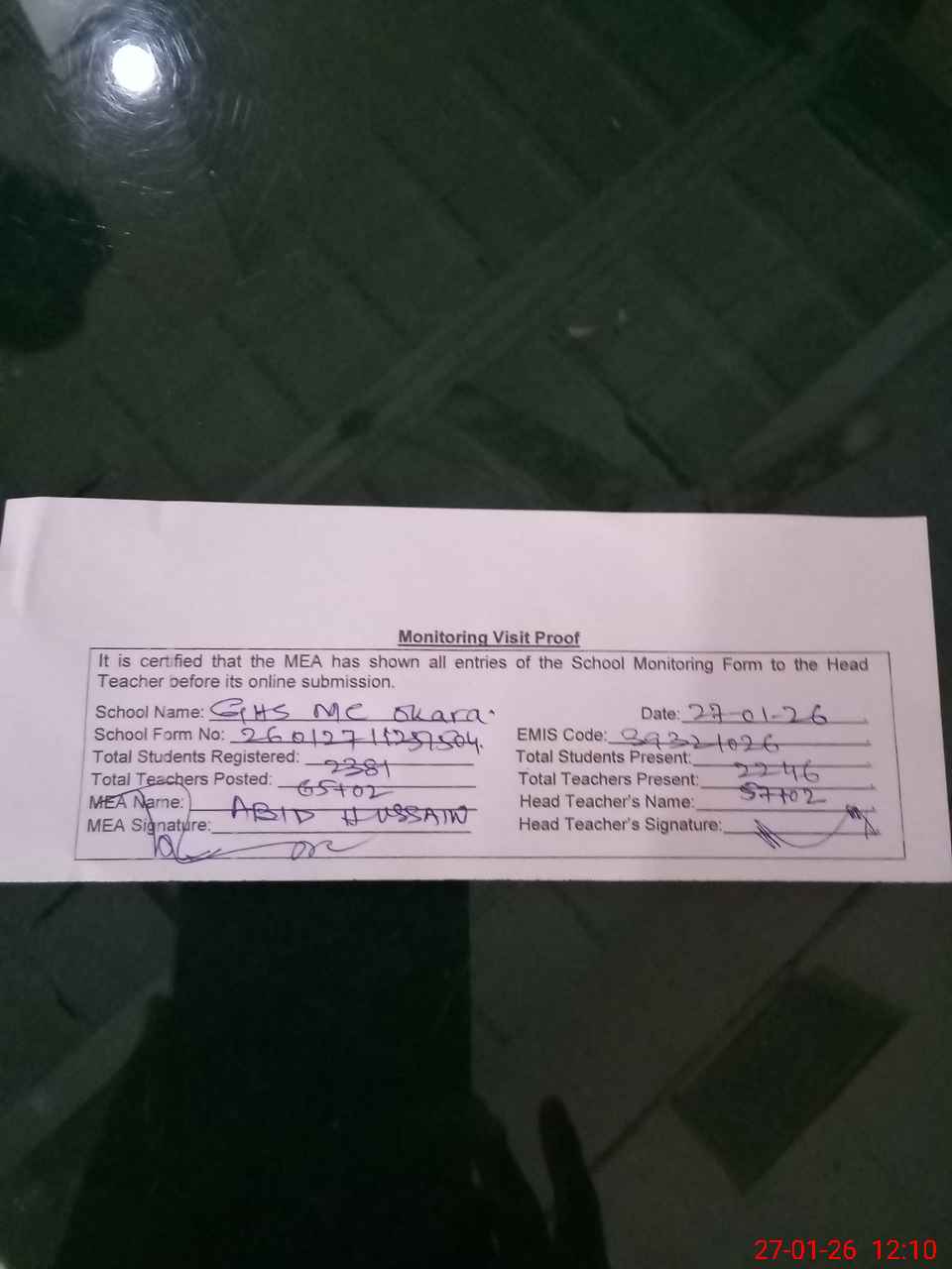 | EMIS Code: 39321026 | Name of School: GHS M.C OKARA | |||