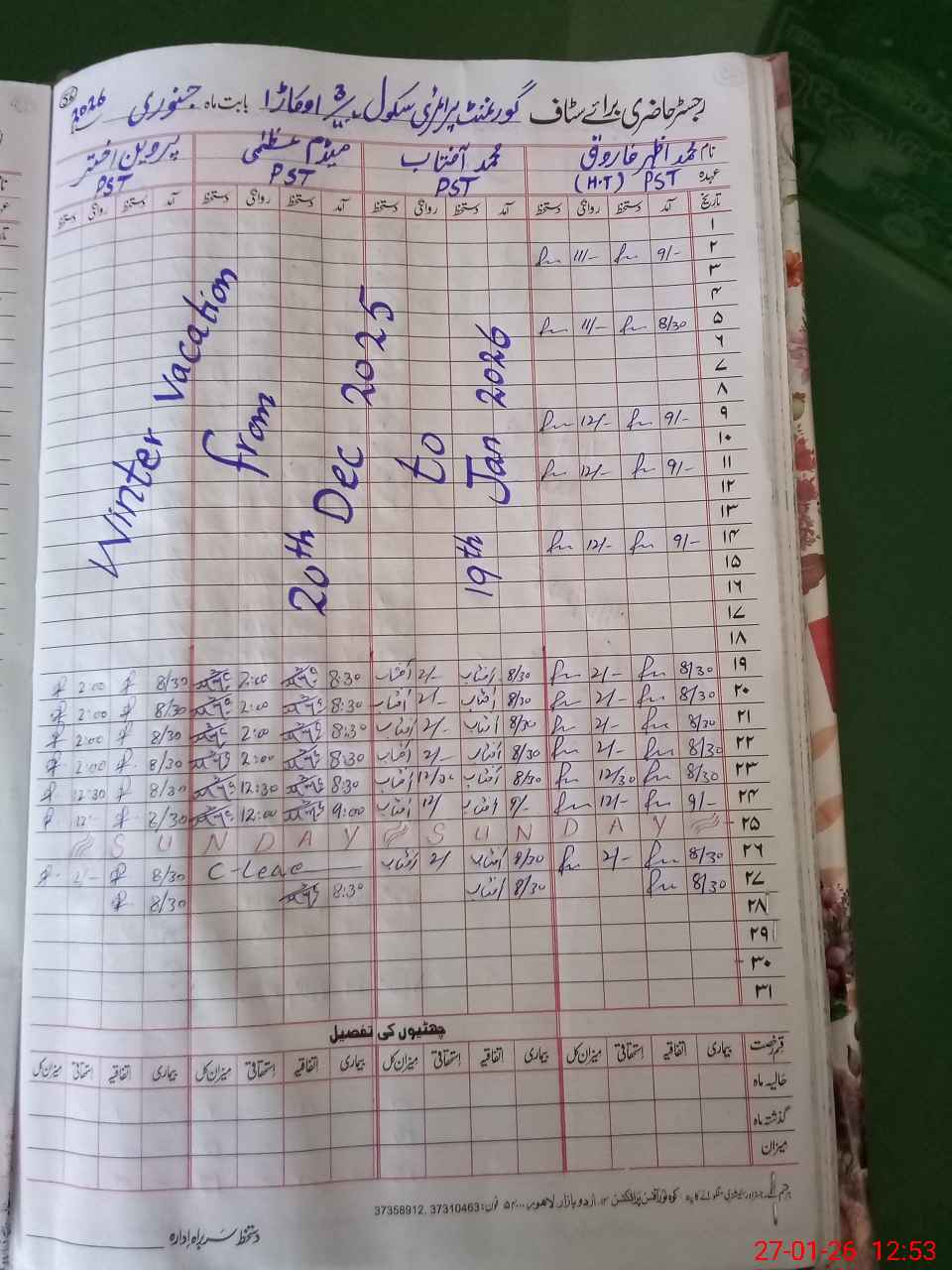 | Name: MAz**** Fa**** Designation: (School Headmaster's/Headmistress's) PTC/JV Phone/Cell Number: 03**** |