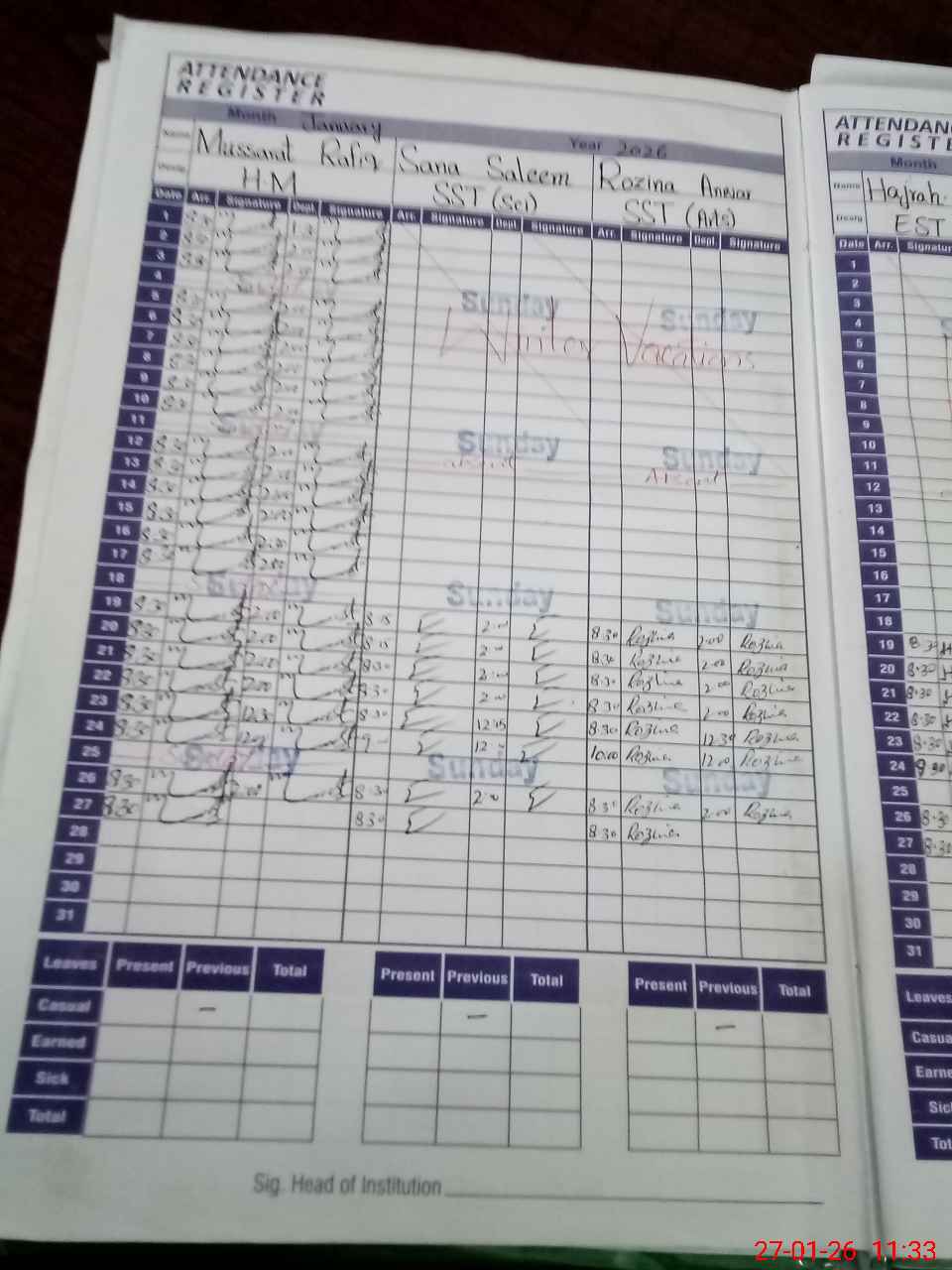 | 33**** | Am**** Sa**** | PST Arts | Regular | 0 | 0 | 0 | 0 | 0 | 0 | 0 | 0 | 0 | Absent (Un-Authorized) |