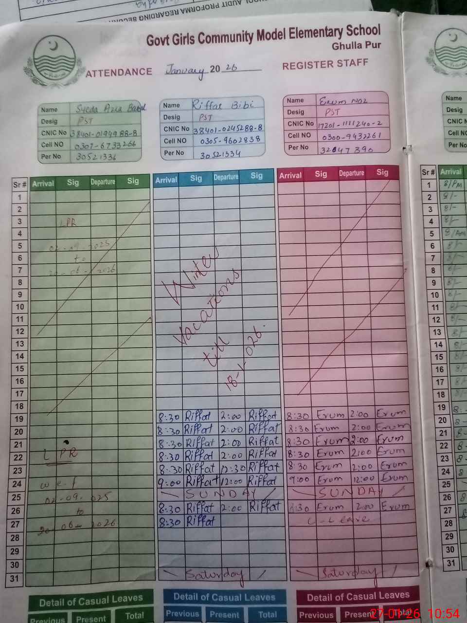 | 38**** | AS**** AB**** | CHUKIDAR | 4 | 0 | 0 | 0 | 0 | 0 | 0 | 0 | 4 | Casual | |