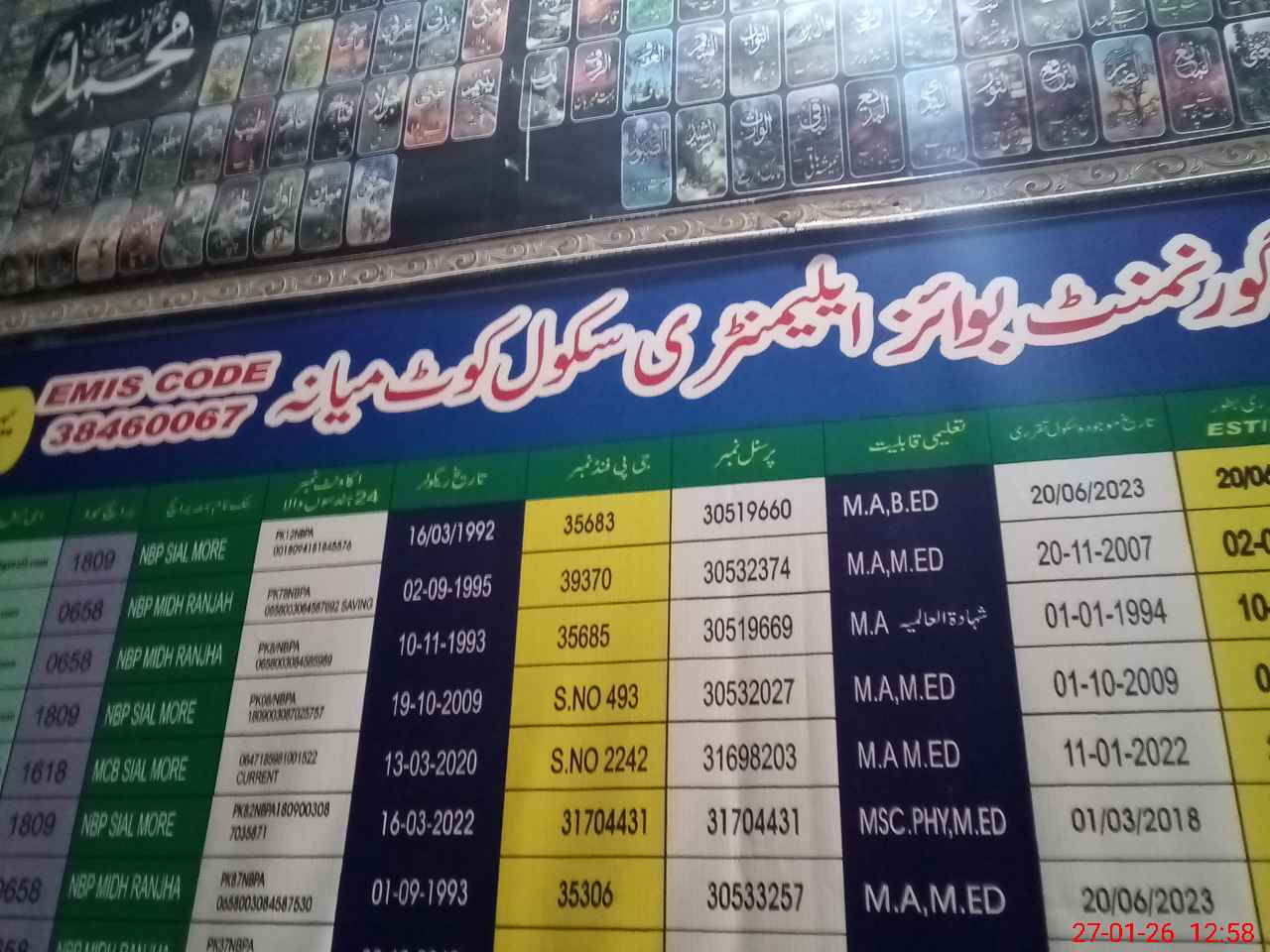 | Name: Mu**** Ah**** Designation: (School Headmaster's/Headmistress's) Incharge HM Phone/Cell Number: 03**** |
