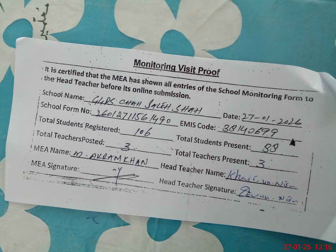 | EMIS Code: 38140699 | Name of School: GGPS CHAH SALEH SHAH | |||