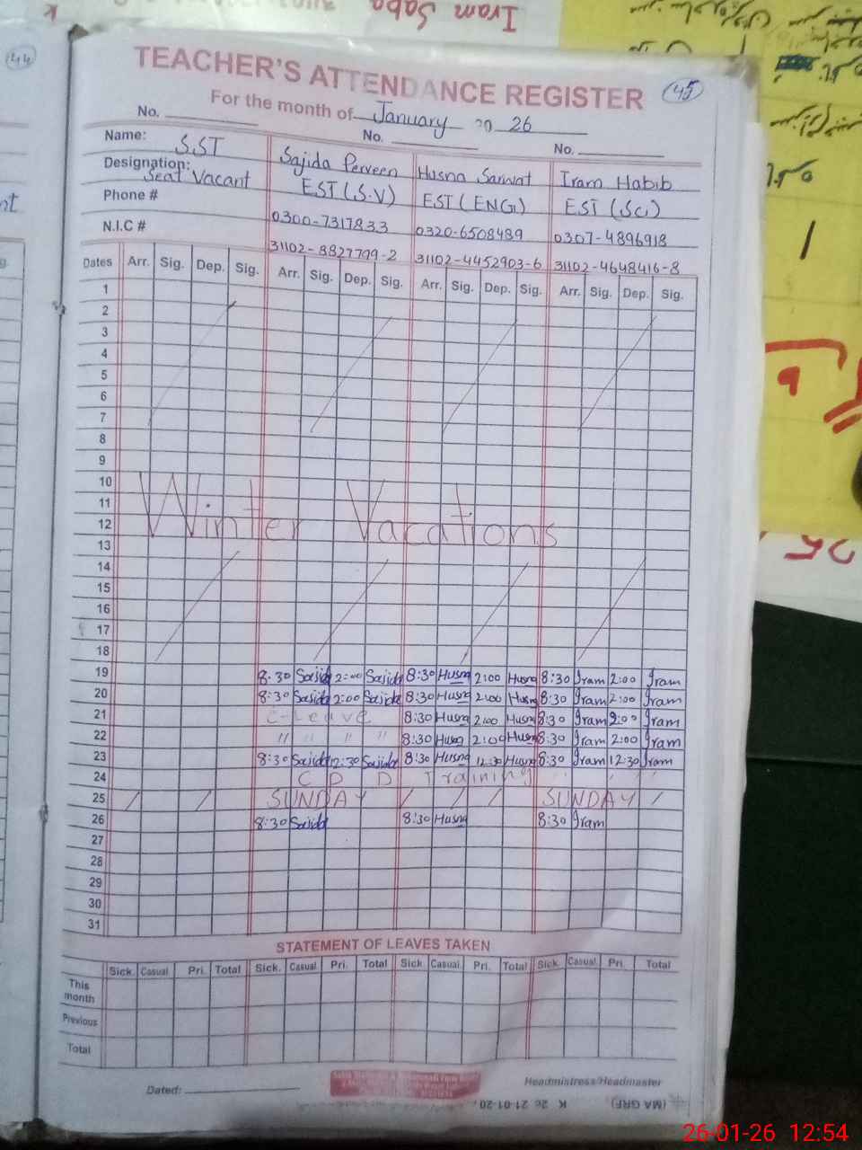 | Name: Sa**** Pa**** Designation: (School Headmaster's/Headmistress's) EST Phone/Cell Number: 03**** |