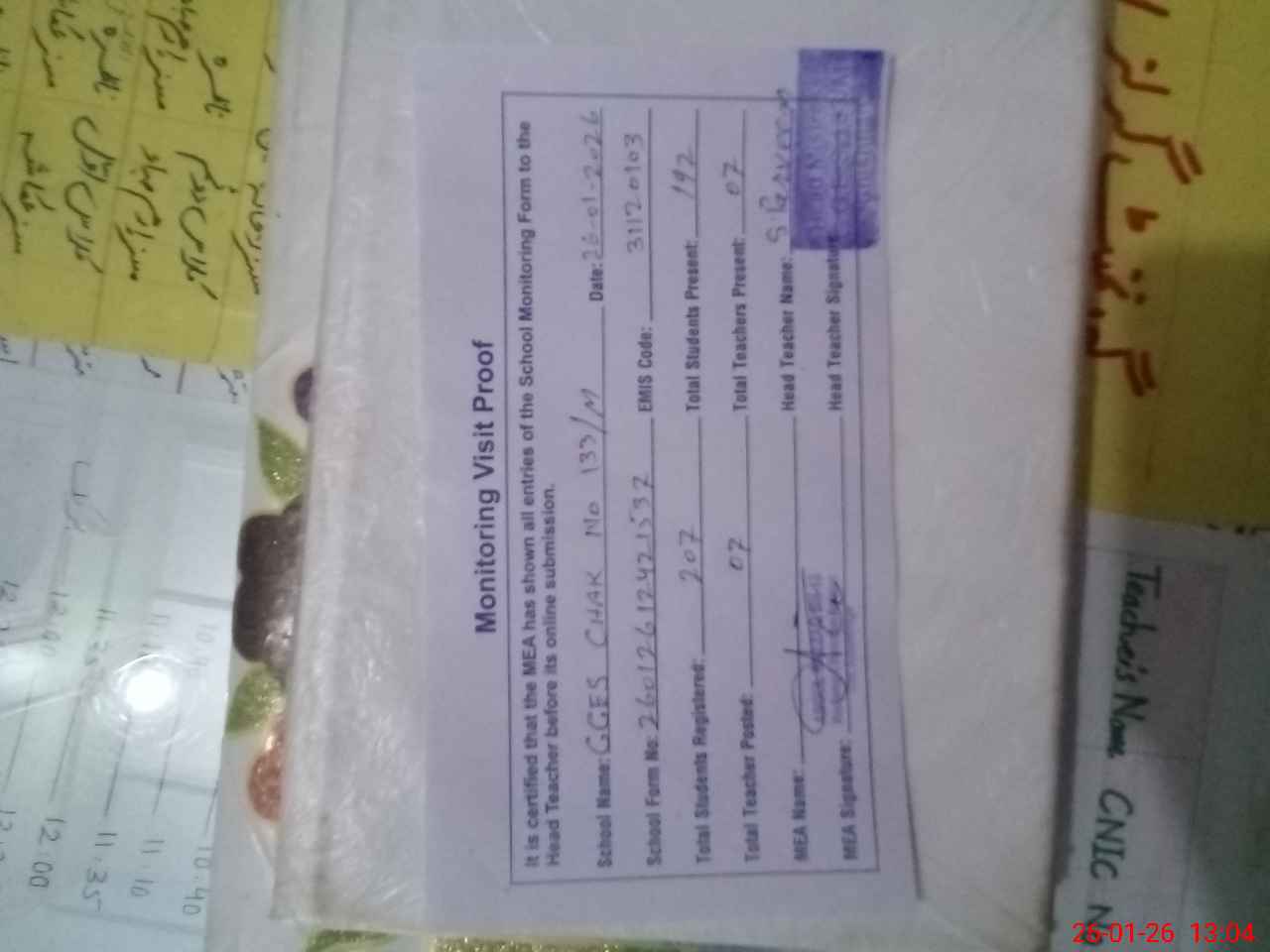 | EMIS Code: 31120103 | Name of School: GGES CHAK NO 133 MURAD | |||