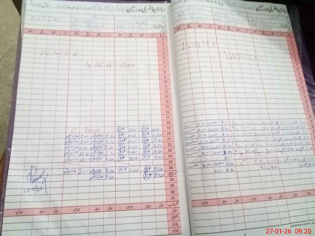 | CNIC | Full Name | Designation | R/C | Absence During Last Calender Month |