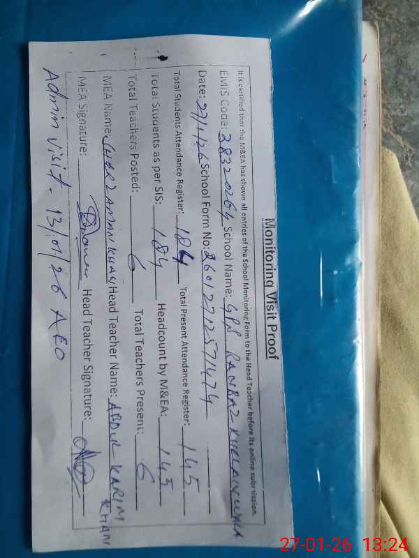 | EMIS Code: 38320264 | Name of School: GPS RANBAZ KHELAN WALA | |||