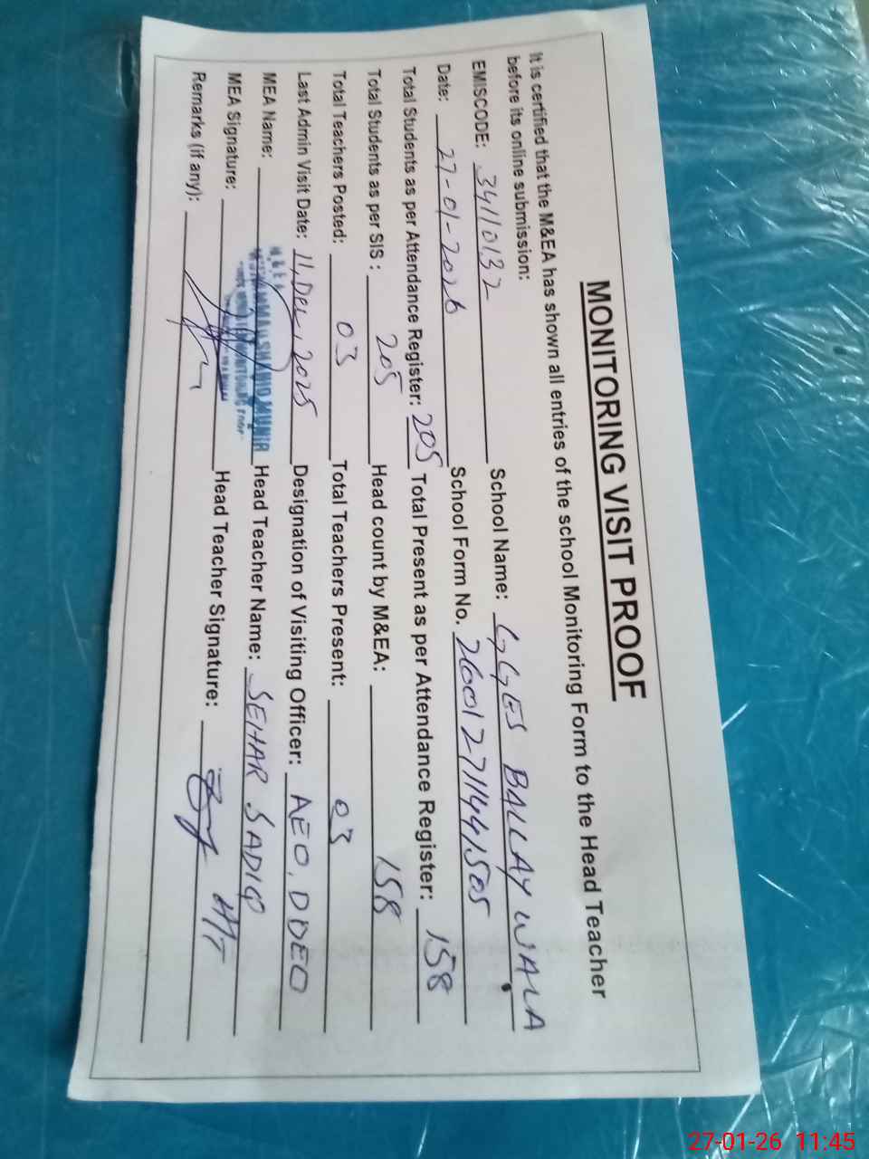 | EMIS Code: 34110132 | Name of School: GGES BALAY WALA | |||
