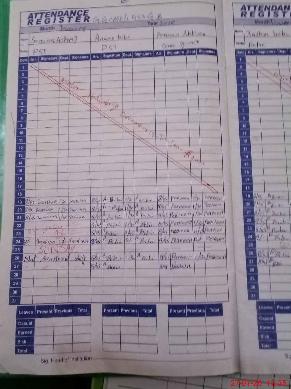 | Leave | Duty | Absent | Maternity | Medical | Ex- Pak |