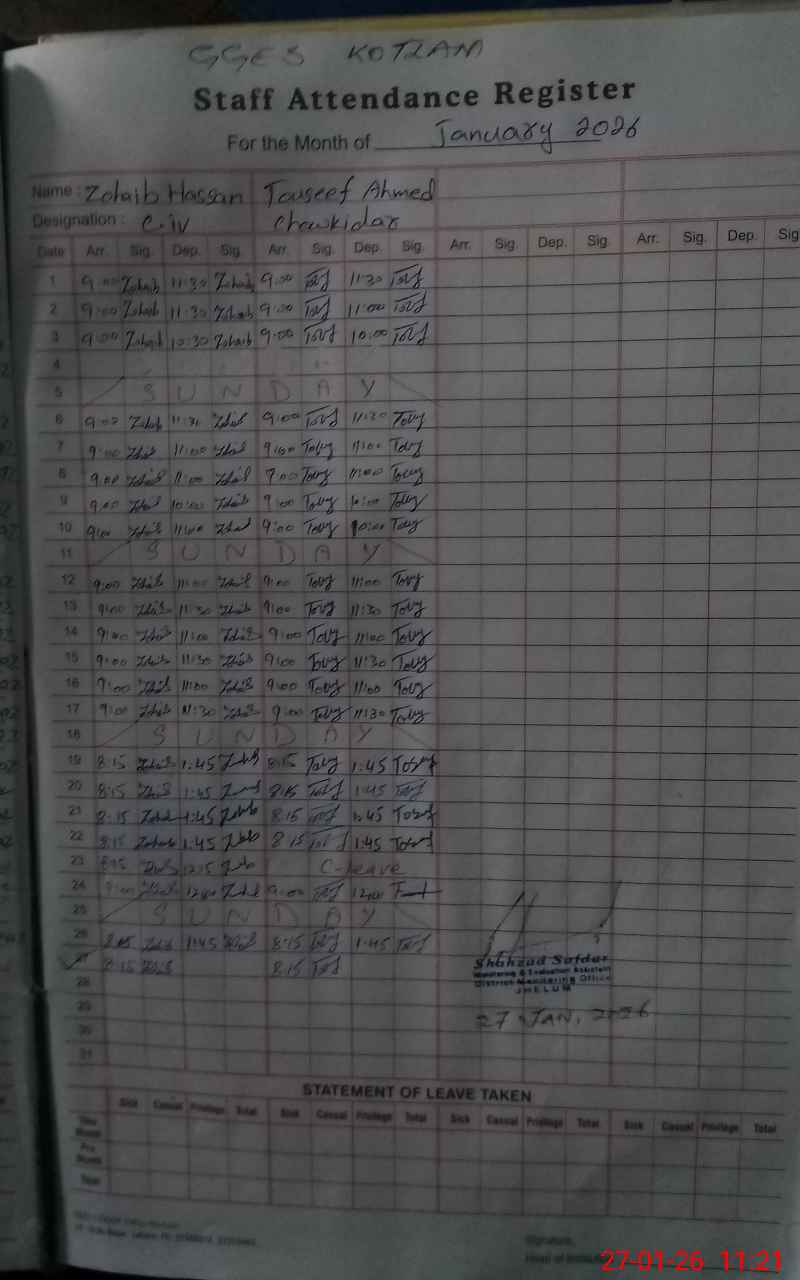 | CNIC | Full Name | Designation | R/C | Absence During Last Calender Month |