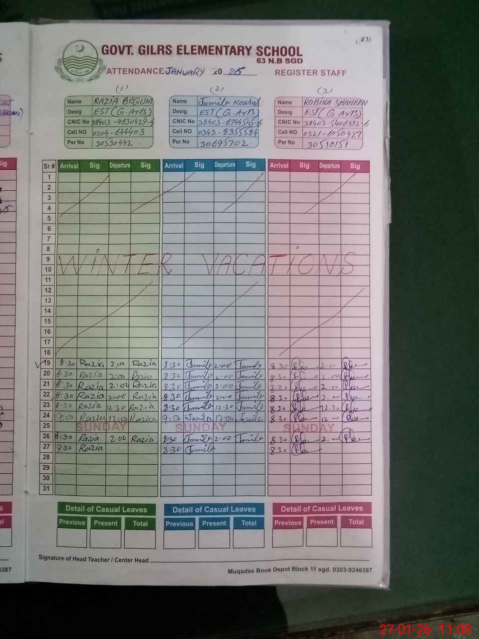 | 38**** | Za**** Ka**** Al**** | PST Science/Maths | Regular | 3 | 0 | 0 | 0 | 0 | 0 | 0 | 0 | 3 | Casual |