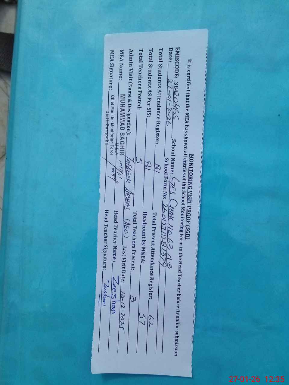 | EMIS Code: 38420465 | Name of School: GES CHAK NO.63 NB | |||