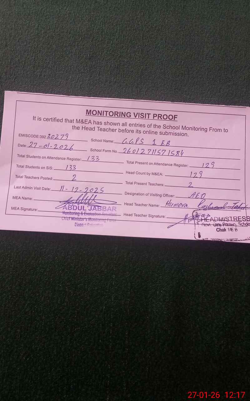 | EMIS Code: 39220279 | Name of School: GGPS 1 EB | |||