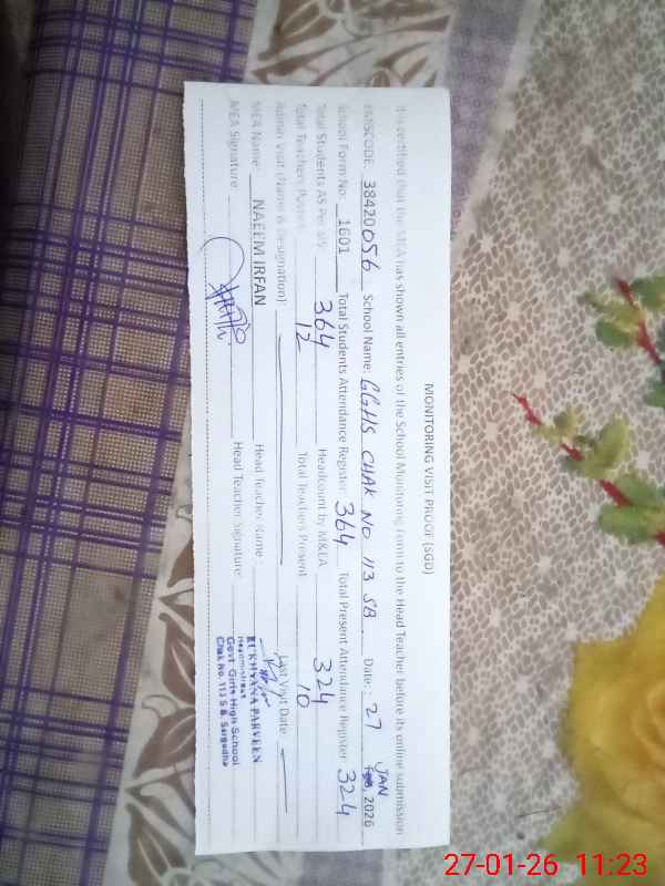 | EMIS Code: 38420056 | Name of School: GGHS CHAK NO.113 SB | |||