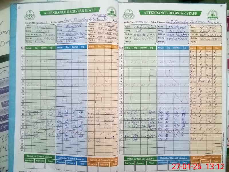 | 38**** | Ra**** Ah**** Na**** | NQ | Regular | 0 | 0 | 31 | 0 | 0 | 0 | 0 | 0 | 0 | Absent (Un-Authorized) |