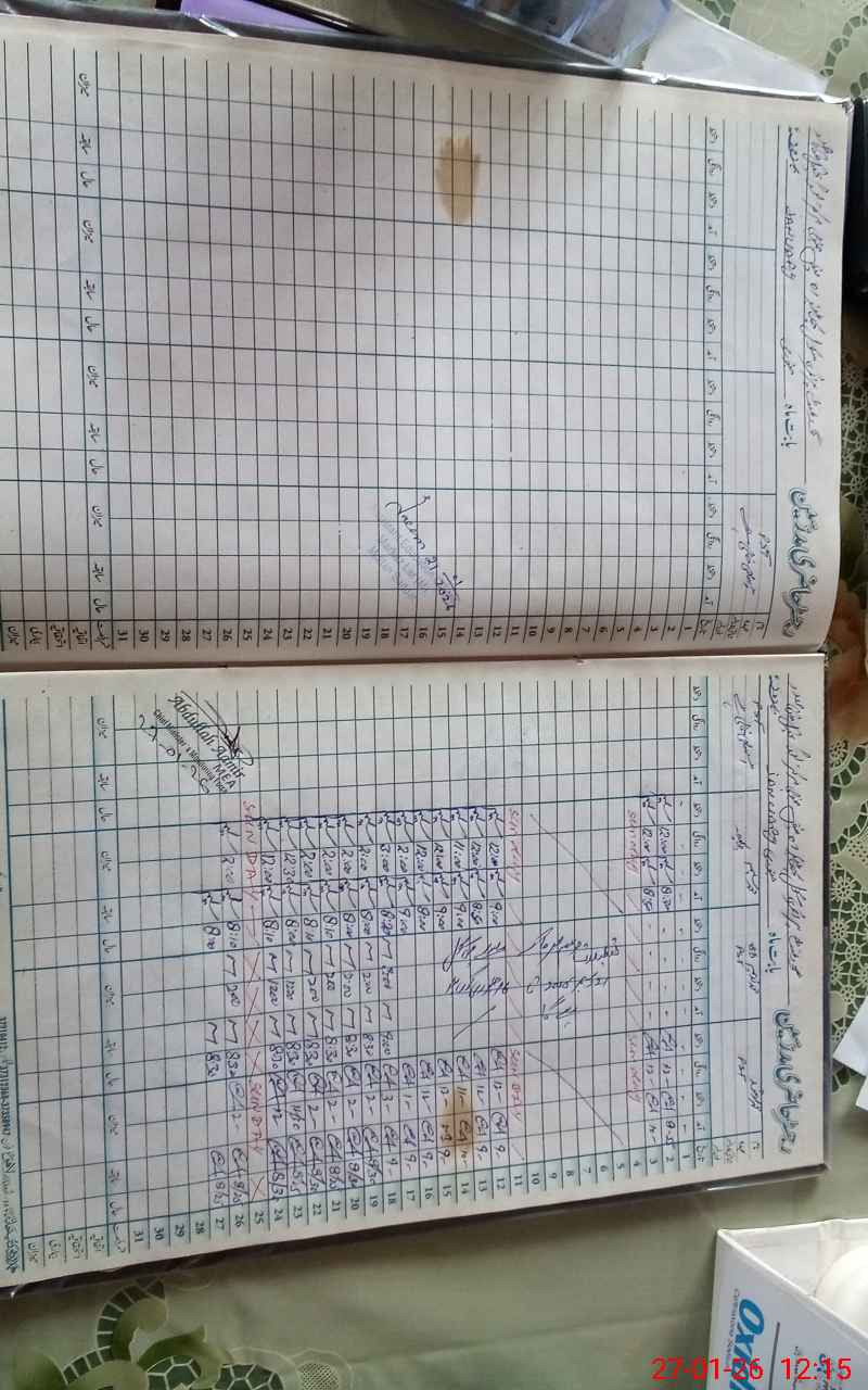 | CNIC | Full Name | Designation | R/C | Absence During Last Calender Month |