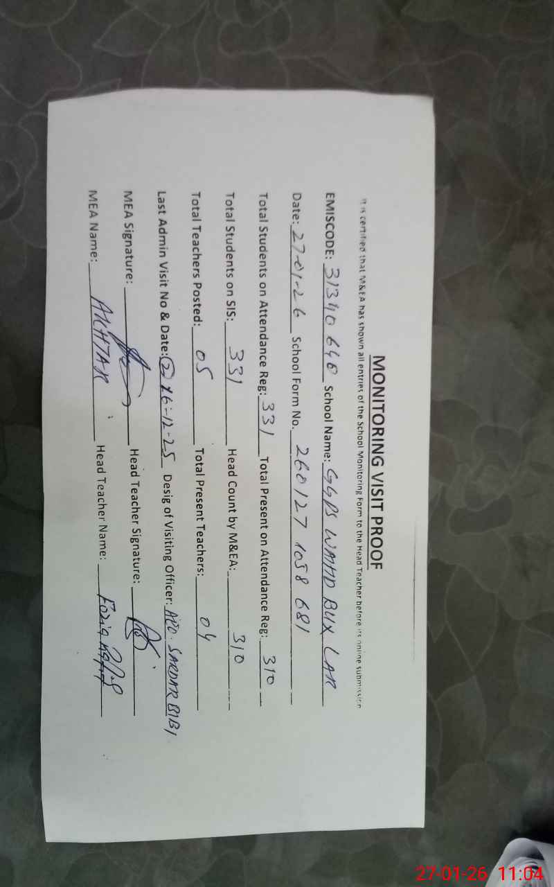 | EMIS Code: 31340640 | Name of School: GGPS WIHID BUX LAR | |||