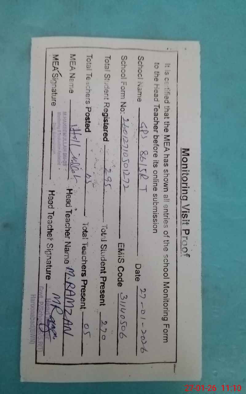 | EMIS Code: 31140506 | Name of School: GPS CHAK NO 86/5-R T | |||