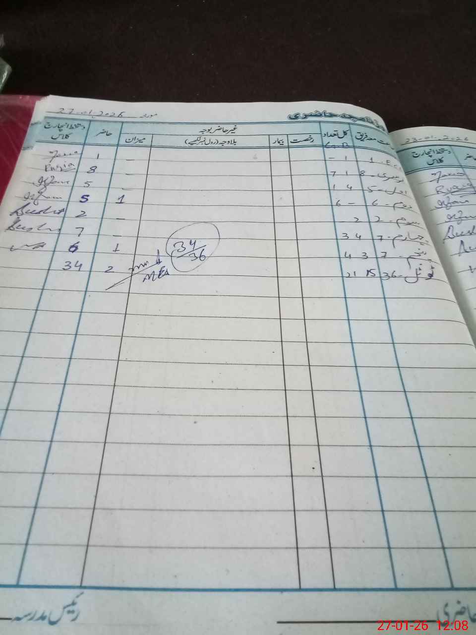 | Total Students Present | 0 | 1 | 5 | 5 | 2 | 7 | 6 | 34 | ||||||||