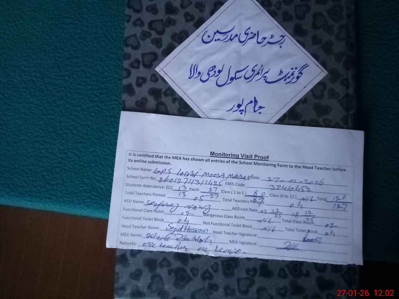 | EMIS Code: 32410452 | Name of School: GPS LODHI WALA MOOSA MEERAN | |||
