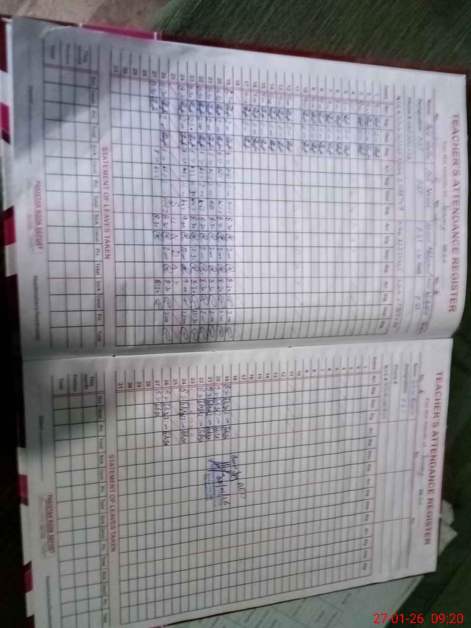 | CNIC | Full Name | Designation | R/C | Absence During Last Calender Month |