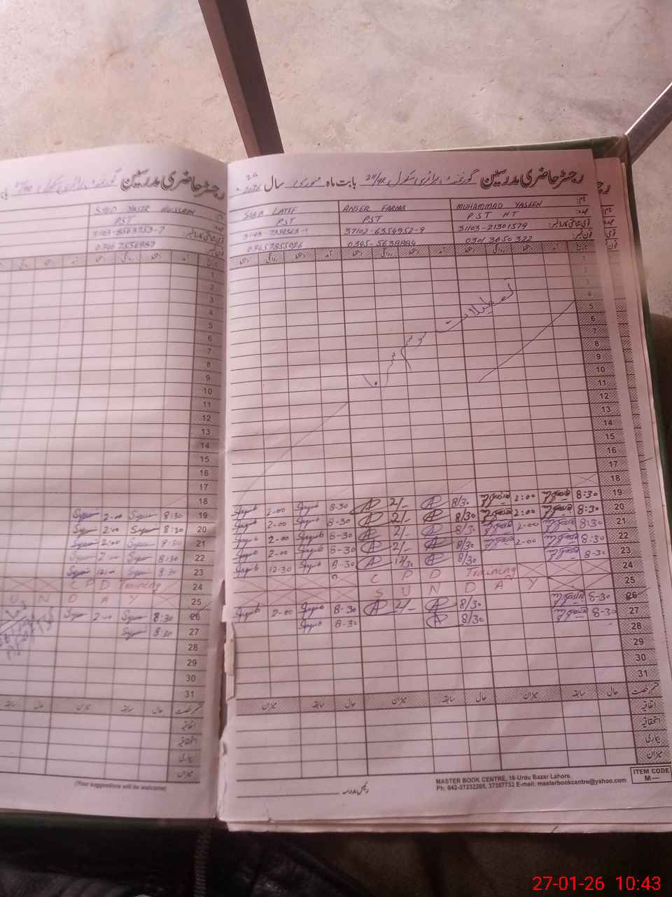 | CNIC | Full Name | Designation | R/C | Absence During Last Calender Month |