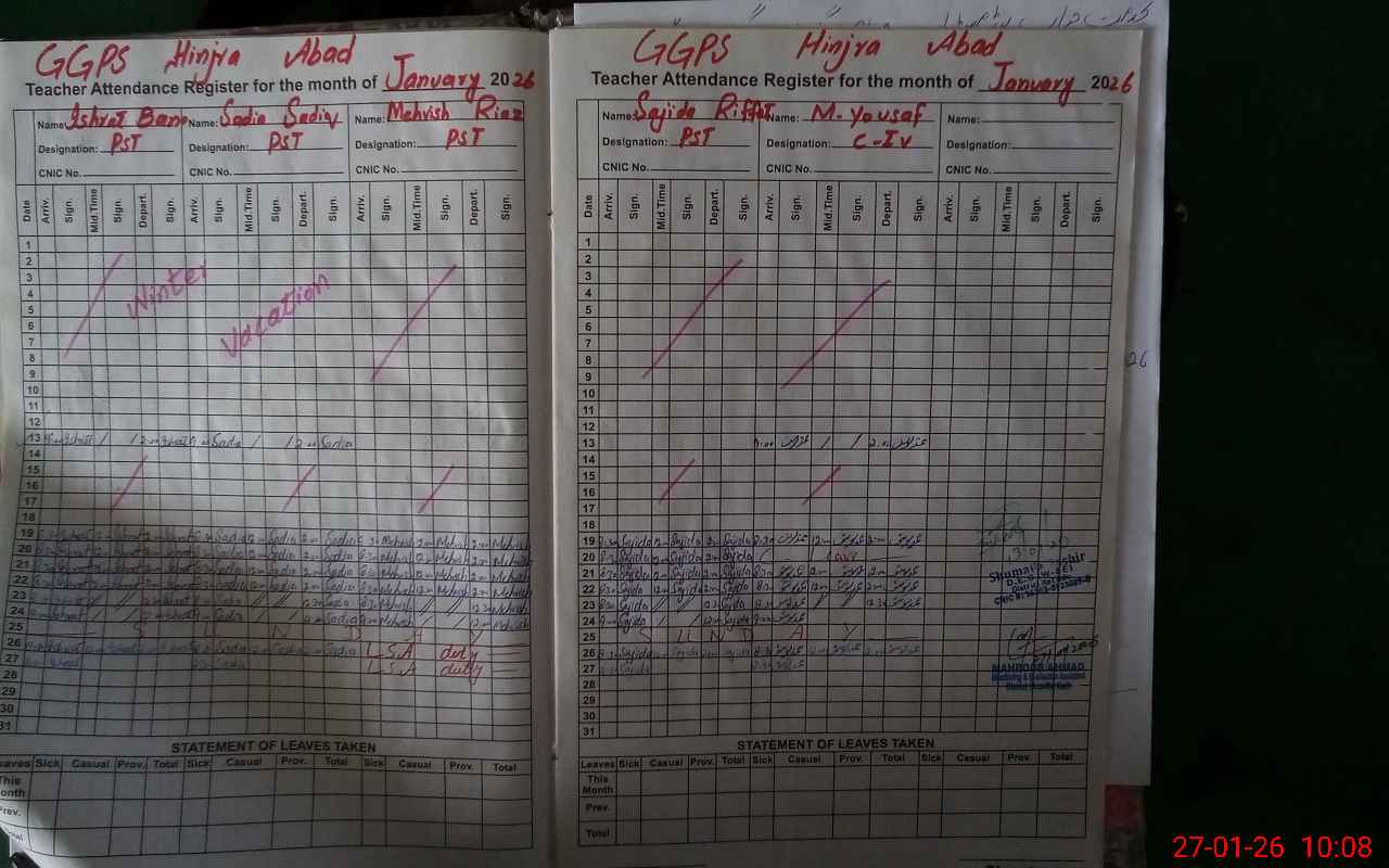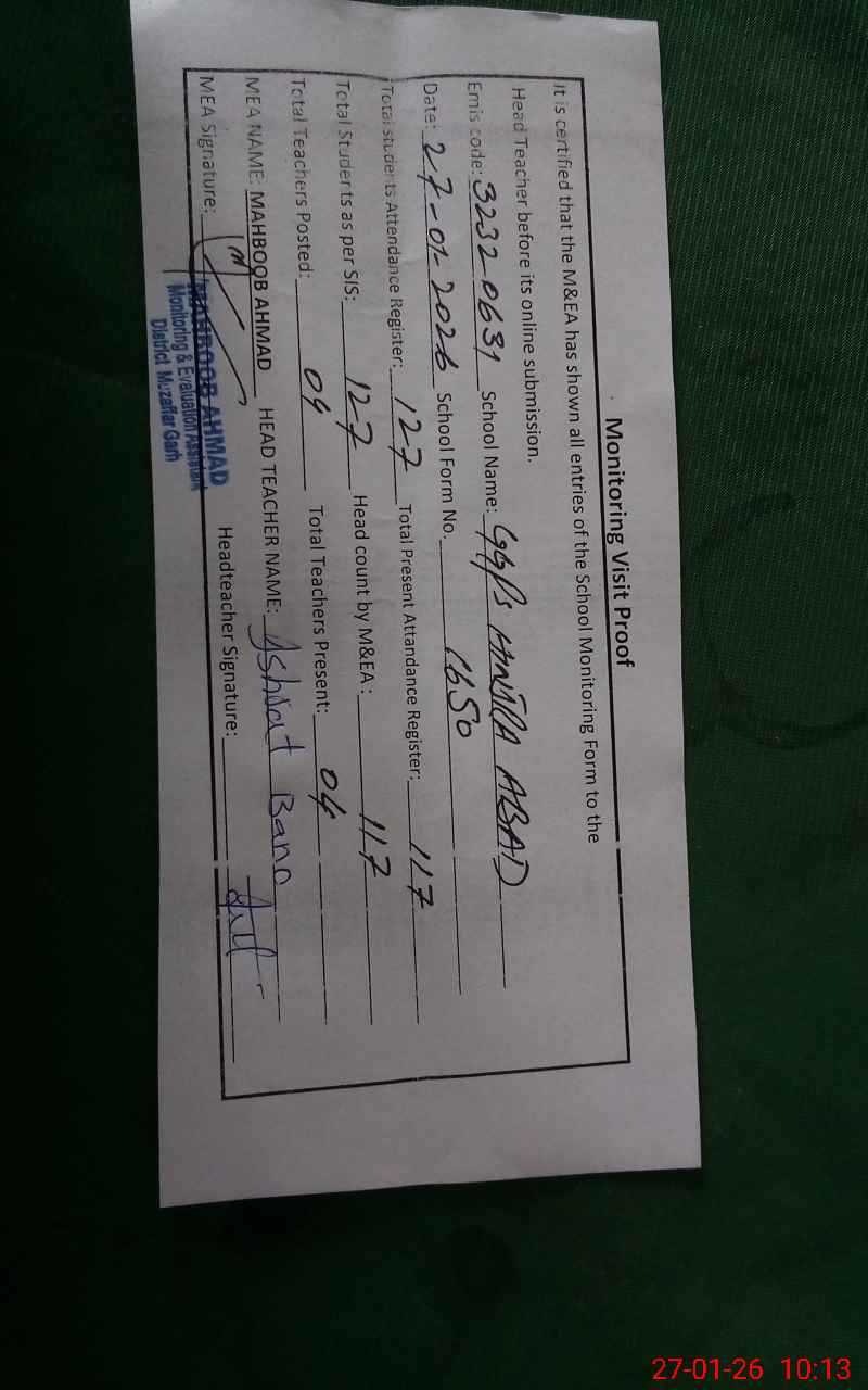 | EMIS Code: 32320631 | Name of School: GGPS HINJRA ABAD | |||