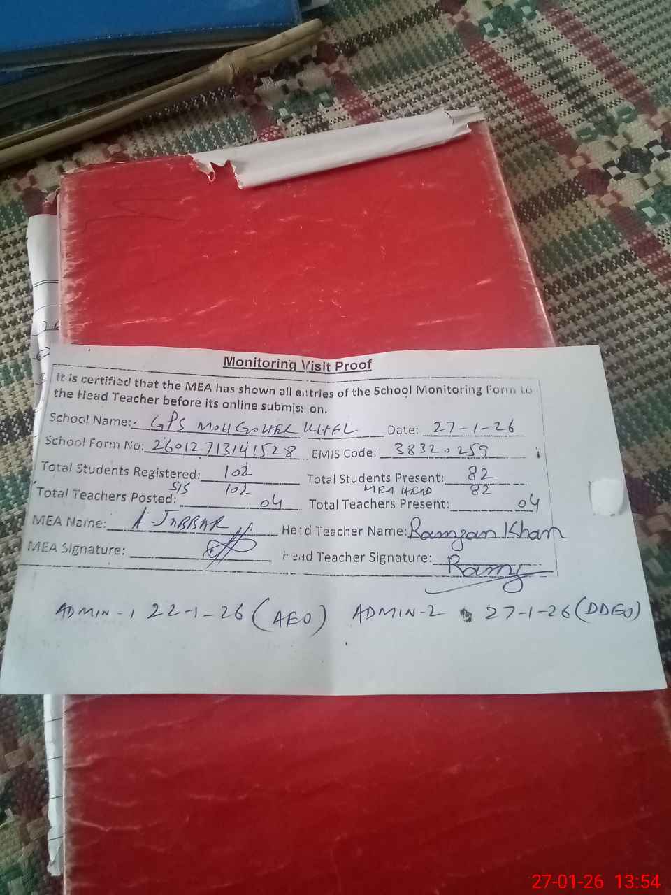 | EMIS Code: 38320259 | Name of School: GPS MOH. GOHAR KHEL | |||